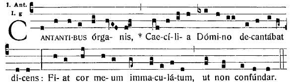 Katru gadu 22. novembrī Baznīca atzīmē jaunavas un mocekles Sv. Cecīlijas svētkus. Viņa tiek uzskatīta par Baznīcas mūzikas aizbildni un viņas vārdā nosauktas vairākas mūziķu biedrības, konservatorijas un kori. Cecīlija ir pazīstama kā 3. gadsimta mocekle, kas cēlusies no bagātas romiešu ģimenes. Jau savu kāzu dienā viņa atklāj savam līgavainim Valeriānam, ka ir solījusies Dievam saglabāt jaunavību. Viņas ietekmēts kristību no pāvesta Sv. Urbāna rokām pieņem arī Valeriāns, pēcāk arī viņa brālis Tiburcijs. Tā kā ir vajāšanu laiks, kā mocekļi drīz vien iet bojā visi trīs jaunie cilvēki, kā arī pāvests. Visi šie notikumi ir atspoguļoti Sv. Cecīlijas svētku stundu liturģijas tekstos. Kāds šai svētajai sakars ar mūziku? Daudzās gleznās, arī uz viena Rīgas Doma balkona paneļa Sv. Cecīlija attēlota spēlējam ērģeles. Tam iemesls – viņas svētku Vesperu pirmās antifonas iesākums “Cantantibus organis”. Jaunākajos laikos daudzi to saprata kā “skanot ērģelēm”. Patiesībā ar organa Senajā Romā varēja apzīmēt dažādus mūzikas instrumentus. Viss teikums tad skanētu tā: “Mūzikai (jau) skanot, Cecīlija dziedāja Kungam, teikdama: “Lai mana sirds ir bezvainīga, ka netieku apkaunota””. Tātad – kad kāzu muzikanti jau spēlēja, Cecīlija lūdz Dievu uzturēt viņu nesatricināmu viņas jaunavības solījumā. Taču šo tekstu varam uztvert arī kā simbolu laicīgās un liturģiskās mūzikas pretstatam: tur – laicīgās izklaides mūzika, te – dziesma Dieva godam.