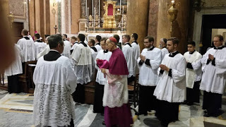 Ceturtdienas, 22. oktobra vakars. Pontifikālvesperes baznīcā Santissima Trinità dei Pellegrini. Vada emeritētais Sanluisas (Argentīnā) arhibīskaps Huans Rodolfo Laise, OFMCap.