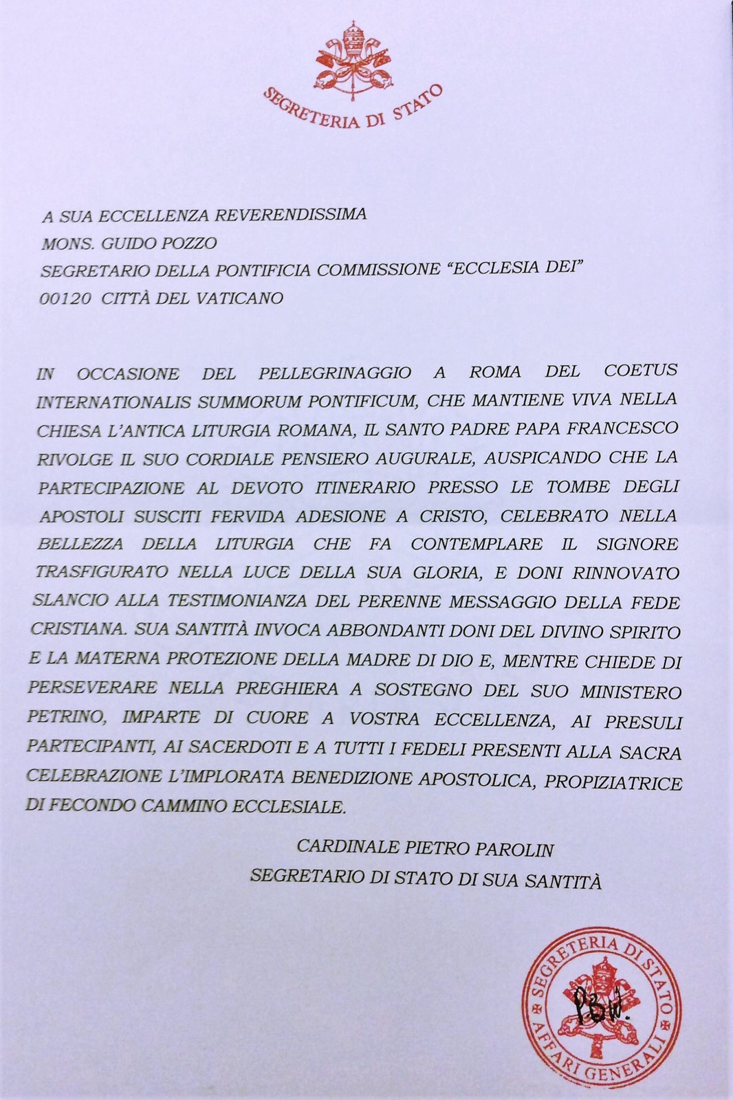 Katru gadu oktobra beigās, un tā kopš 2011. gada, svētceļojumā Populus Summorum Pontificum uz Romu dodas dažādu valstu ticīgie, kas jūtas saistīti ar tradicionālo Romas rita formu. Svētceļniekiem, kuriem šogad pievienojās arī FIUV Ģenerālās asamblejas delegāti, bija iespēja piedalīties dievkalpojumos tradicionālajā formā dažādās Romas baznīcās, ieskaitot Vatikāna baziliku.