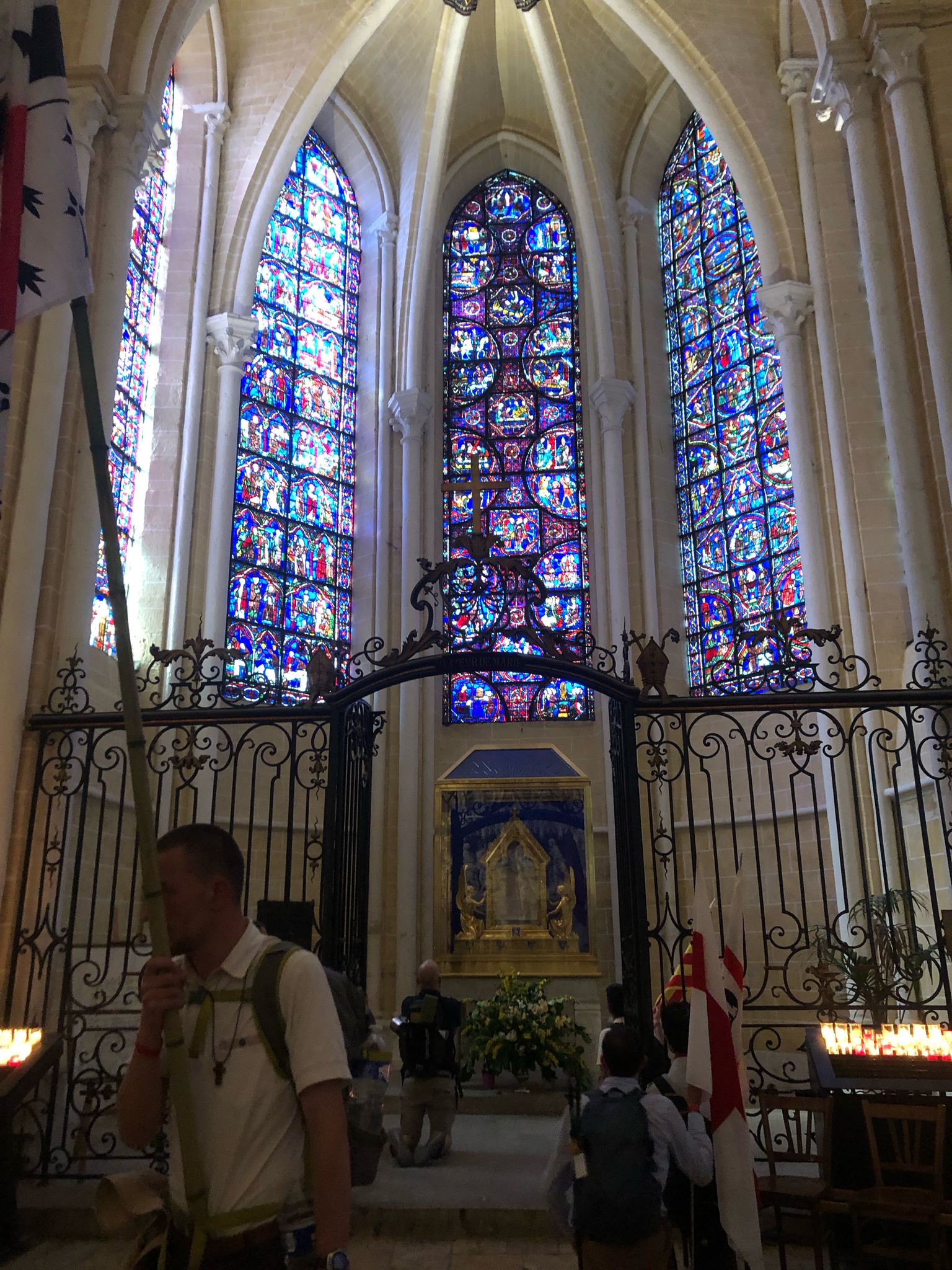 Nedaudz par pašu svētceļojuma galamērķi – Šartras katedrāli. Šartras katedrālē atrodas relikvija – Vissvētākās Jaunavas Marijas lakats. Šī vieta jau izsenis bija svētceļojumu galamērķis. Sākonēji svētceļniekus piesaistīja Spēcīgo Svēto aka (Puits des Saints-Forts), bet jau 12.gs. beigās Šartras katedrāle bija kļuvusi par vienu no svarīgākajiem svētceļojumu galamērķiem Eiropā. Jāpiemin arī, ka Šartras katedrāle ir viena no viskrāšņākajām gotikas stila katedrālēm pasaulē. Šobrīdējais svētceļojuma formāts tika aizsākts 1983.gadā, bet organizācija, kas oficiāli šo svētceļojuma organizē (Notre-Dame de Chrétienté) tika izveidota 1991.gadā.”
